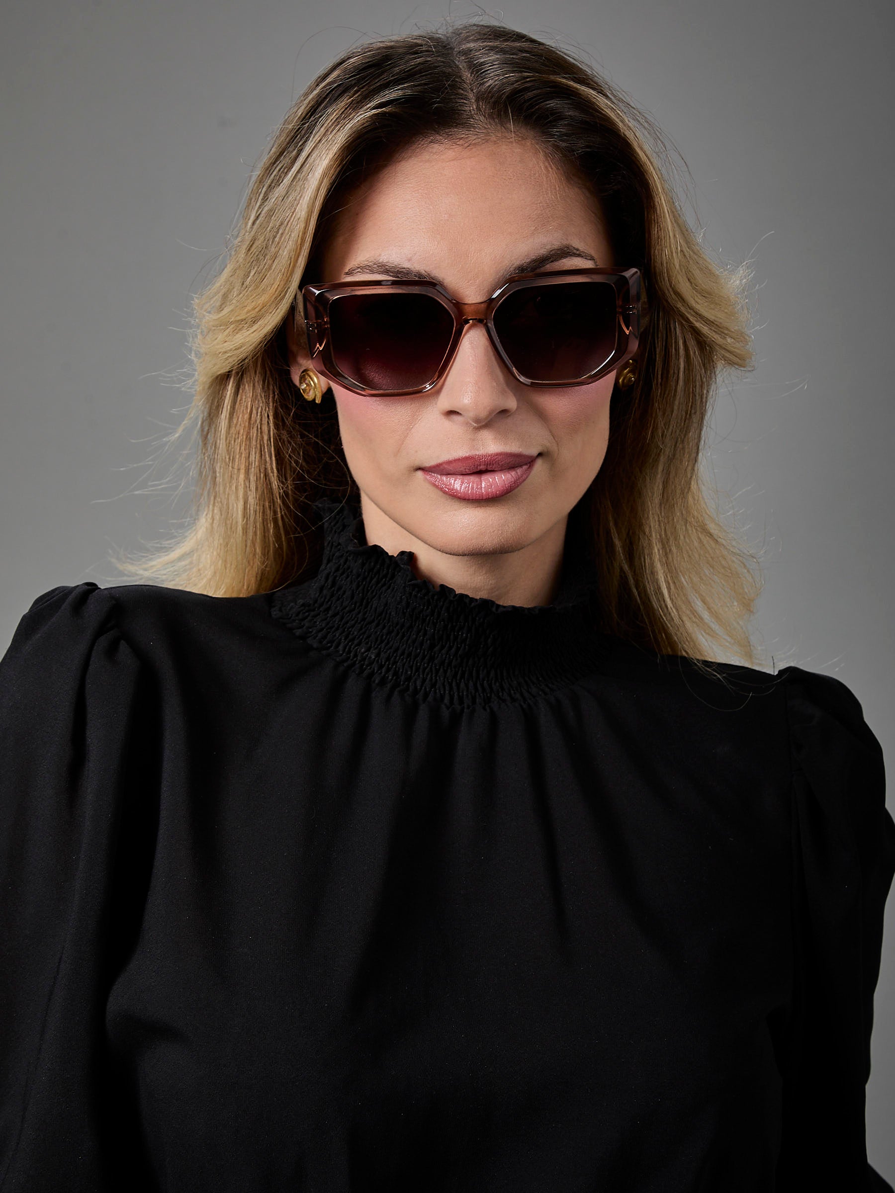 ANNE AMBER é a versão mais quente e sofisticada do clássico ANNE,  um óculos que traduz luxo contemporâneo com leveza e atitude.