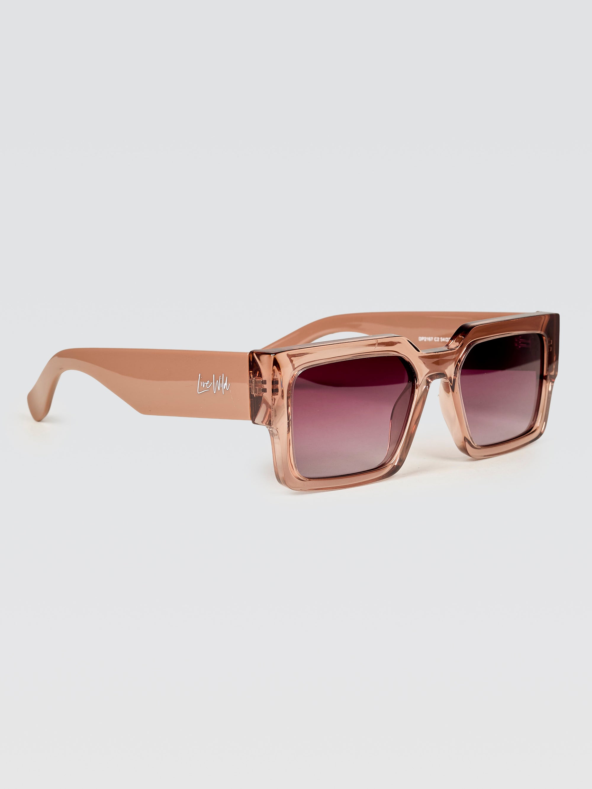 Aura combina design contemporâneo com sofisticação atemporal. Sua armação translúcida em tom champagne quente, de linhas geométricas marcantes, cria um visual elegante e moderno. As hastes largas, com acabamento polido e assinatura Live Wild discreta, garantem conforto, resistência e uma presença visual forte.