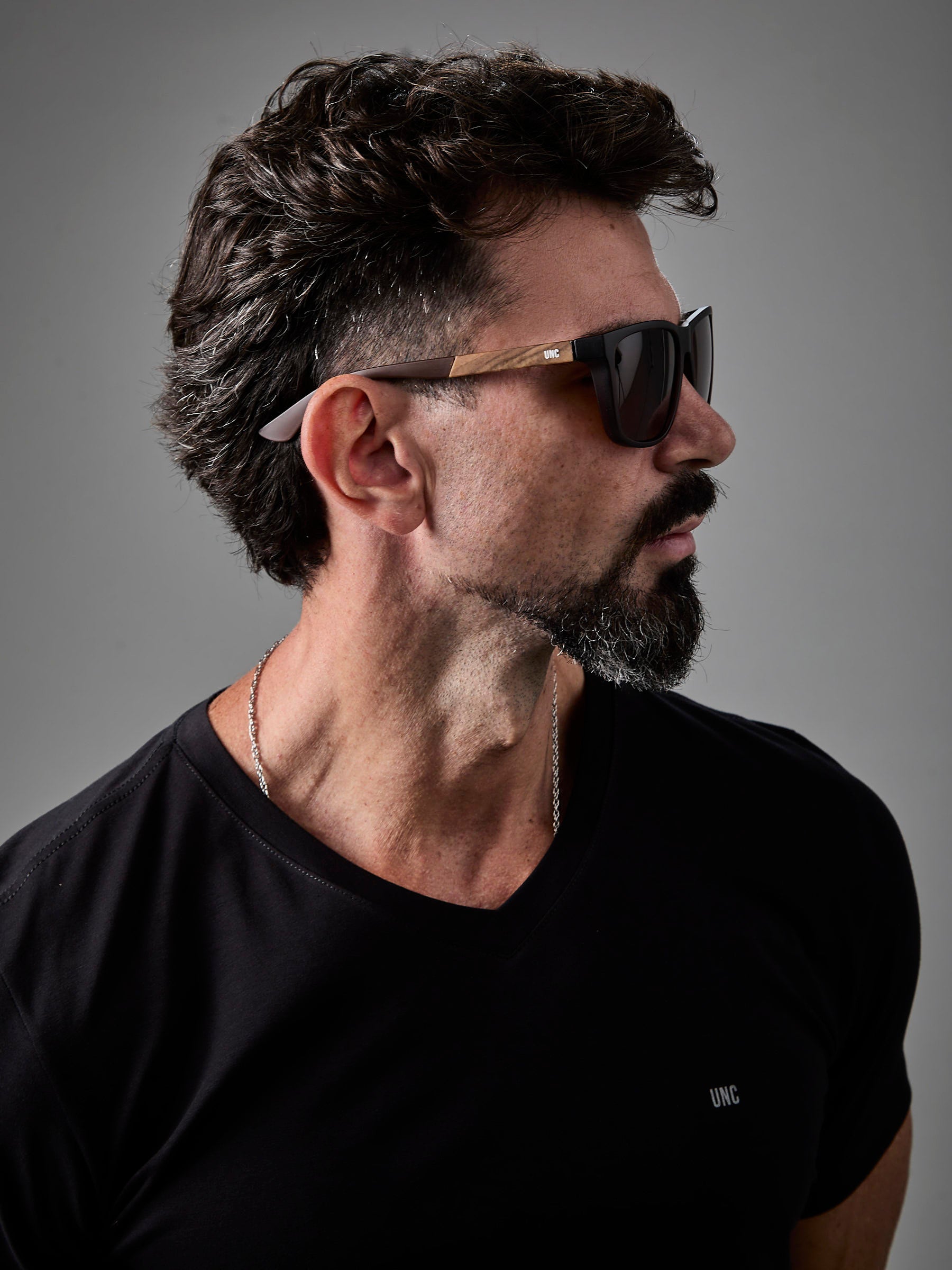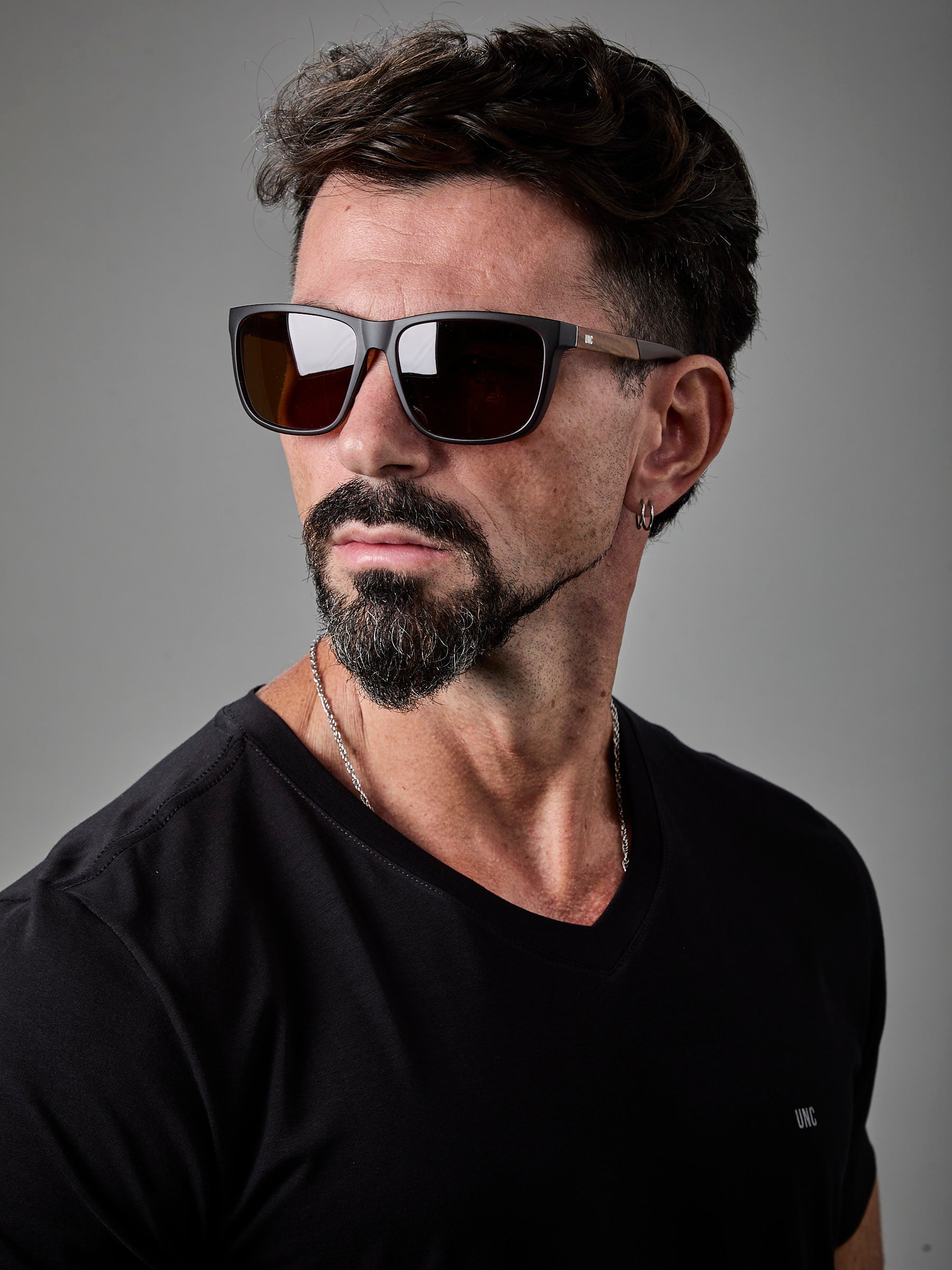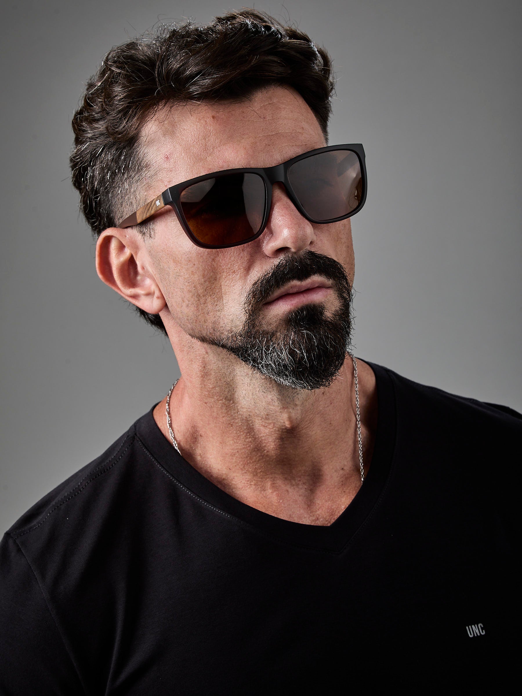 Com design contemporâneo e armação marrom fosca que transmite força e elegância, ele ganha destaque nas hastes que imitam madeira, um toque orgânico e refinado que traduz o equilíbrio perfeito entre natureza e sofisticação.