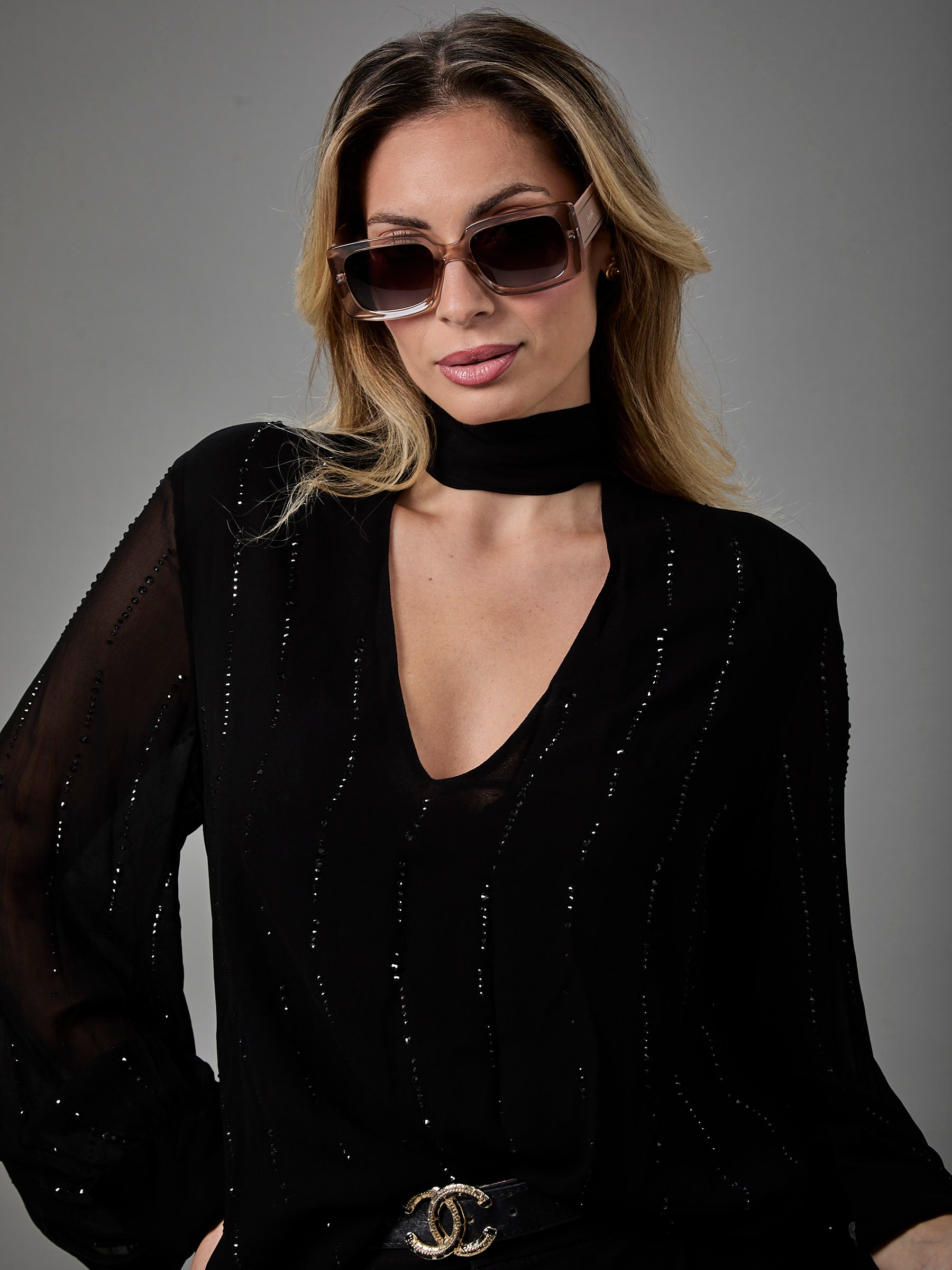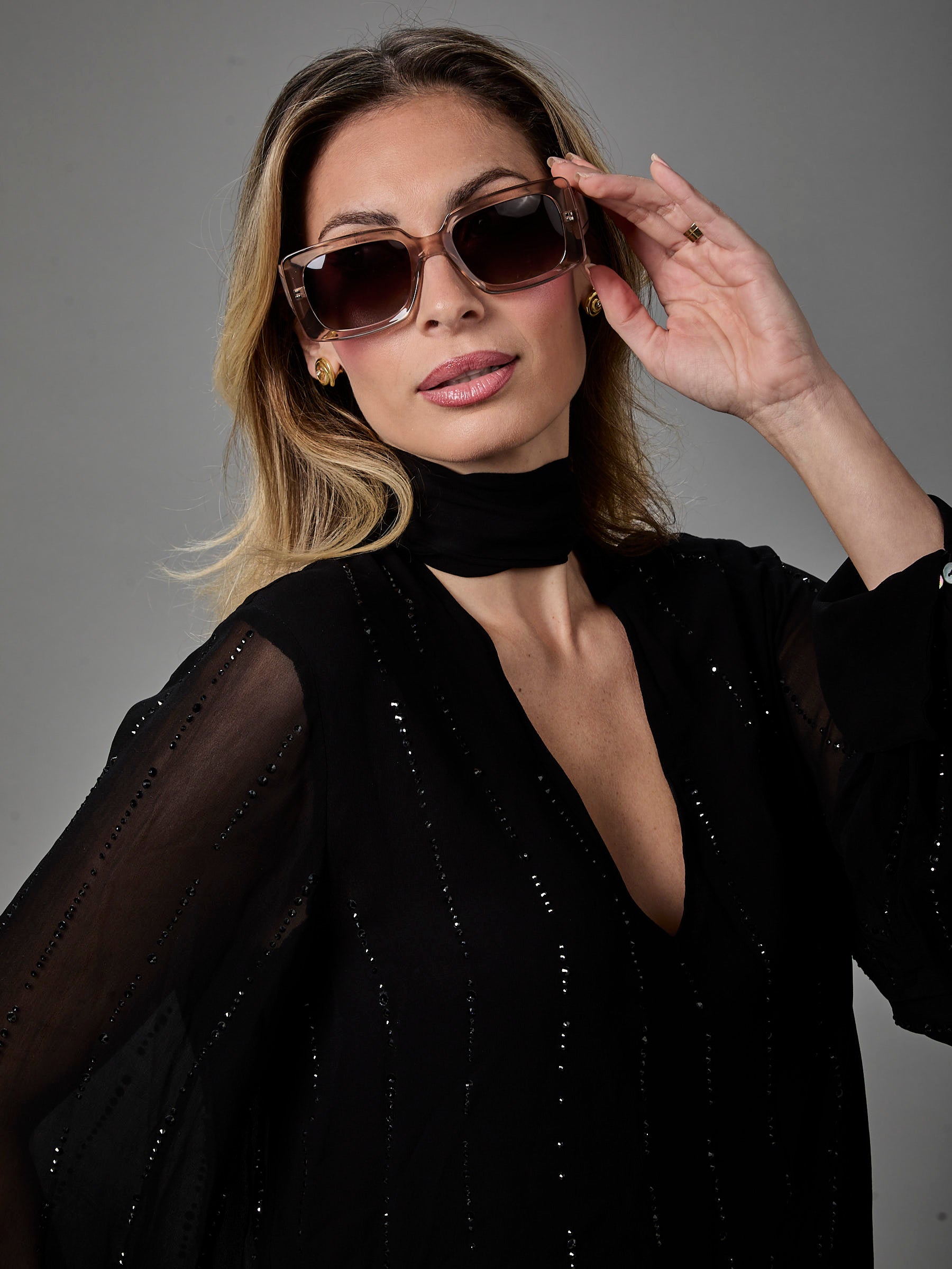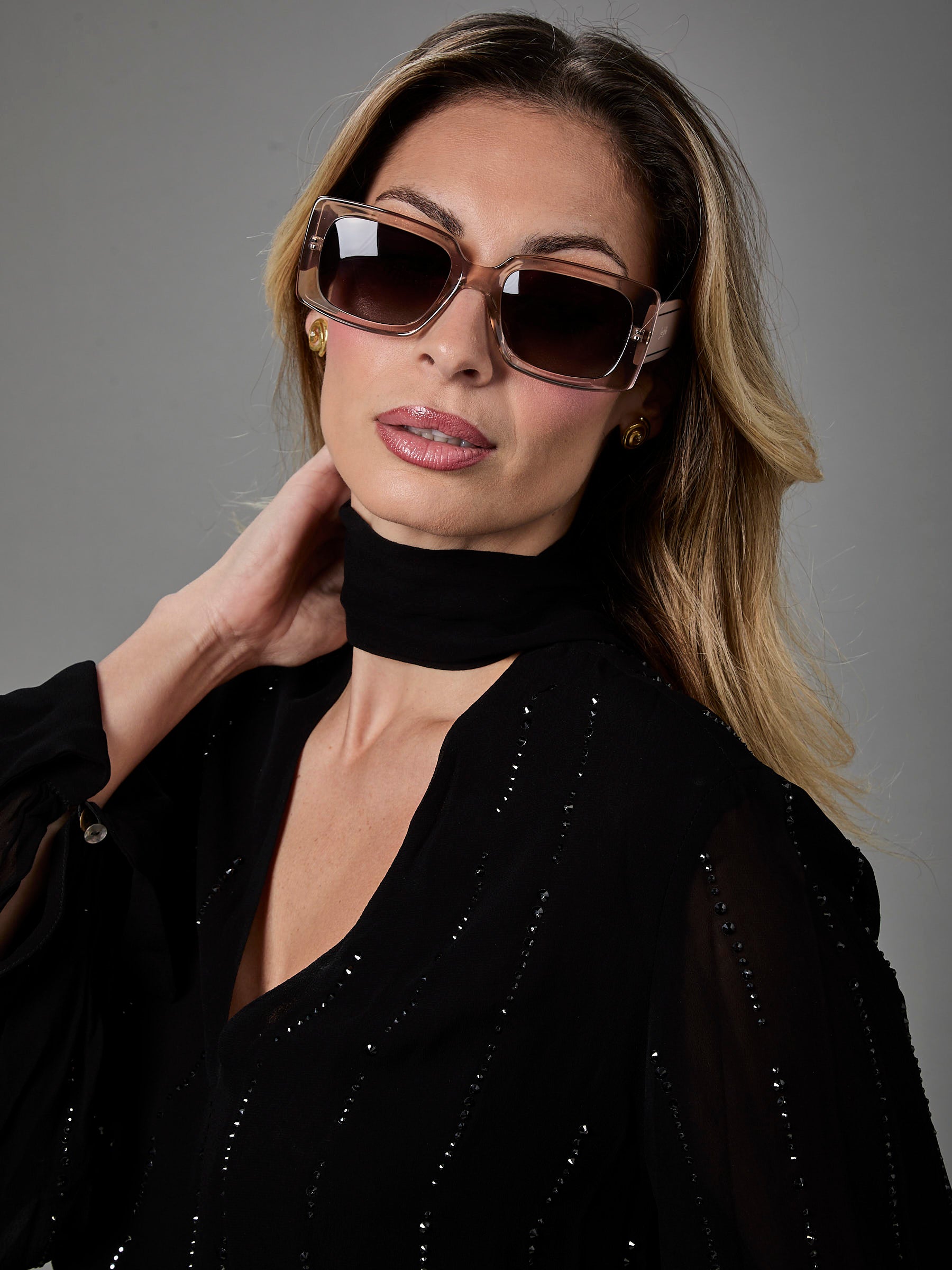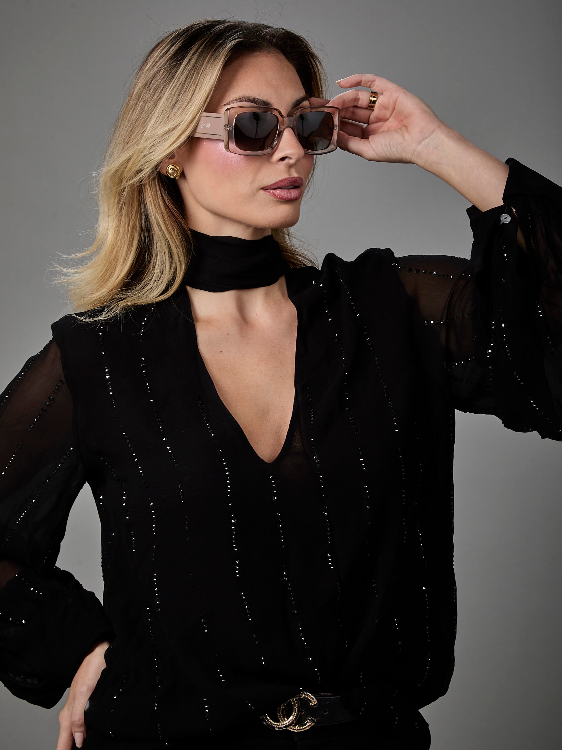 VALENTINA Smoke é a versão mais suave e atemporal do icônico modelo Valentina,  com armação translúcida em tom fumê nude, que reflete elegância e leveza.